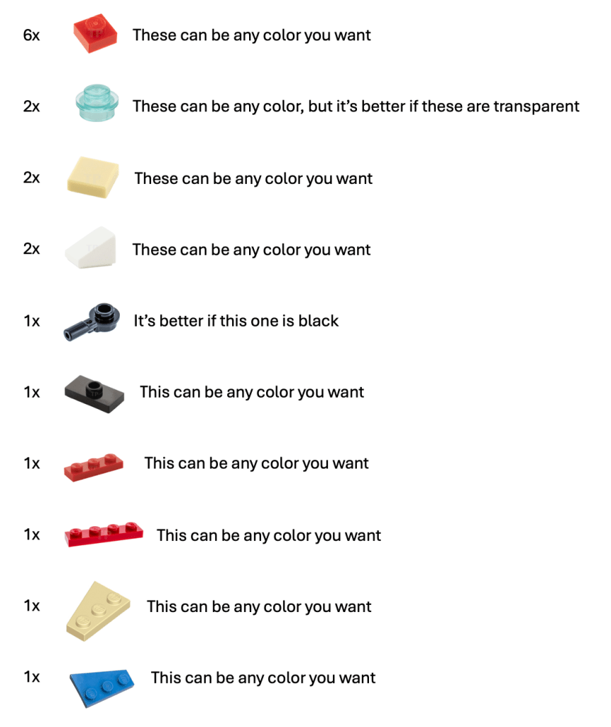 You will need these lego parts: